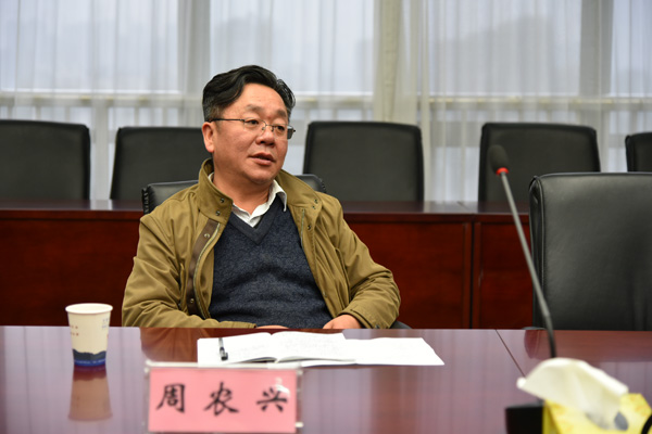 调研座谈前,朱学文书记向周农兴处长介绍我院参加调研会议的领导干部。许传建院长代表我院向周农兴处长一行表示热烈欢迎,并介绍了我院的历史沿革,资质设备,成果业绩,着重介绍了我院岗位设置和人事管理等方面工作。