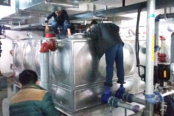 由于备料所需时间长,后勤服务中心专门安排职工每天手动操作控制阀,确保机关和院属各单位能够正常用水,而后勤服务中心所在的主楼一楼却停水十余天。后勤中心自己用水只能到其他楼层拎取,卫生间也不得不停止使用。