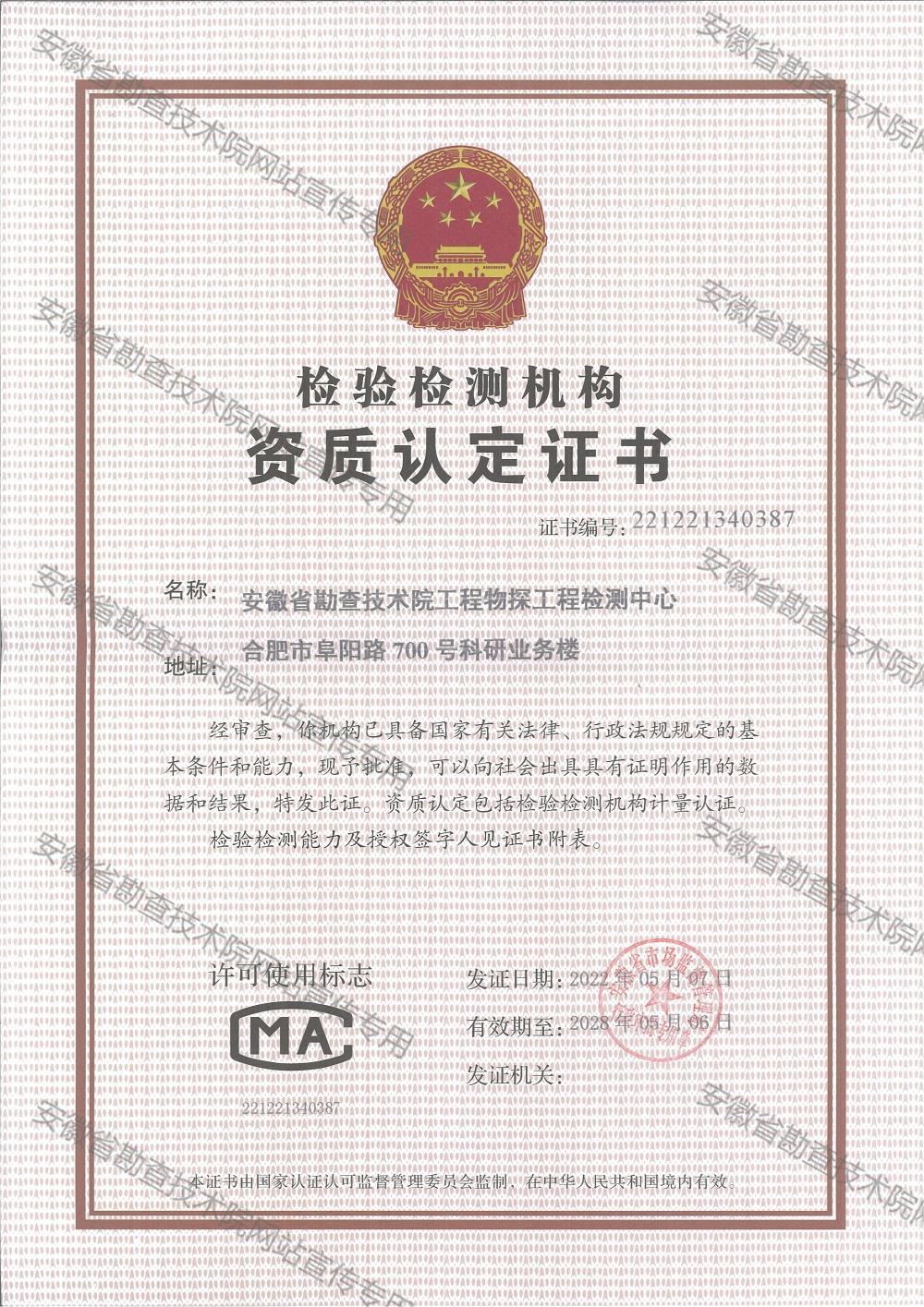 检验检测机构资质认定证书