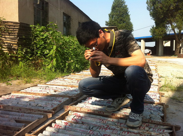 2013年7月,杜东旭从学校毕业来到单位报到,便被分到五河工区参加岩心编录的工作。初来乍到的他,每天跟着同事一起开着小摩托奔波于各个钻孔间。当时正值多年不遇的高温,酷热的天气给工作带来不小的麻烦。然而为了将打出来的岩心及时编录,他们经常顶着骄阳坚持完成当天的工作。