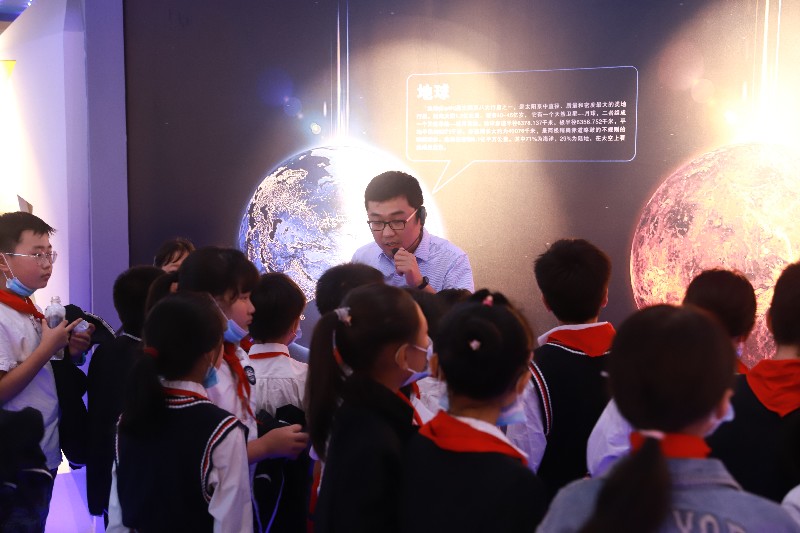 在科普基地,科技社团成员对地球科学知识产生了浓厚的兴趣,结合自己的生活经历,展开了学习之旅。在科普试验展厅,科技社团成员在讲解员的引导下,通过问答的方式进行互动交流,进一步加强了对地球科学的认知。在岩石展台,科技社团成员被形形色色的岩石深深地吸引住,通过对岩石形成与用途的认识,感受到地球科学知识与生活紧密相连。在祖国地形地貌的沙盘上,科技社团成员更加直观立体地认识了祖国的美丽河山,激发了强烈的爱国热情。在地球物理仪器展厅,小学科技社团成员通过讲解员的讲解,对地球物理仪器有了感性的认识;同时通过观看视频了解了地球物理勘探各种野外工作方法。