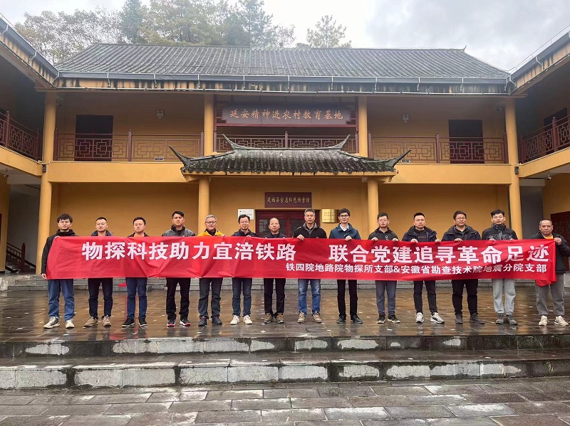 近日,地震勘探分院党支部与铁四院地路院物探所支部在宜涪铁路孟家垭隧道二维地震勘查项目施工阶段,利用雨天空余时间开展联合党建活动。双方党员一起参观了建始县官店革命历史陈列馆。