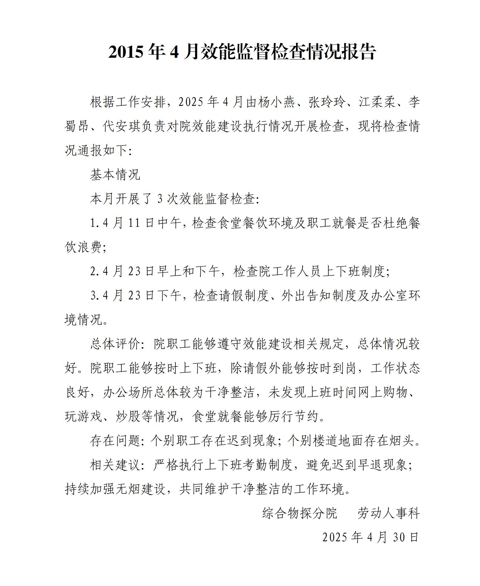 2025年4月效能检查情况通报